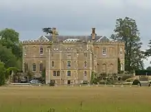 The house is built of limestone ashlar to a T-shaped plan with a hipped slate roof, and it has a two-storey frontage of 7 bays. It stands in 4,000 acres of park and farmland, which is Grade II listed and bisected by the River Stour.[2] Several other associated buildings, such as stables and entrance lodges, are also listed. A number of former features of the estate – such as the pleasure grounds, an obelisk and a Chinese pavilion – have since been lost.