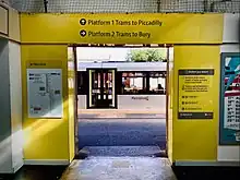 There is a frequent Metrolink service to Manchester and Bury, with a tram every six minutes to Manchester for most of the day (alternate trams running to Bury, avoiding Piccadilly). Monday-Saturday evening and Sunday journeys run every 12 minutes to Piccadilly, with journeys to Bury requiring a change of trams at Piccadilly Gardens.[12]