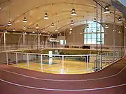 43°42′10″N 72°17′04″W / 43.70278°N 72.28444°W / 43.70278; -72.28444 Dartmouth College's Alumni Gymnasium, located in Hanover, New Hampshire, in the United States, is the center of Dartmouth College's athletic life and hosts venues for many of Dartmouth's 34 varsity sports. After its completion in 1910, it was considered to be one of the most complete athletic facilities in the Eastern United States. The gymnasium contains two swimming pools, intramural basketball courts, championship basketball courts, two weight rooms, squash courts, 1/13 of a mile jogging track, two saunas, fencing lanes, and a rowing tank for crew training.
