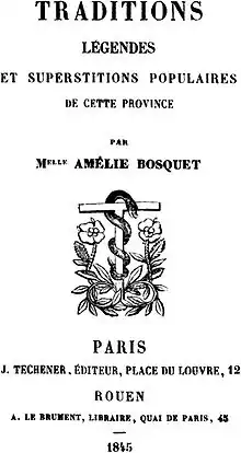 Amélie Bosquet was born in Rouen on July 1, 1815, and died in Neuilly-sur-Seine on March 26, 1904. She was a traditionalist French writer, and pioneer in the domain of legend.
