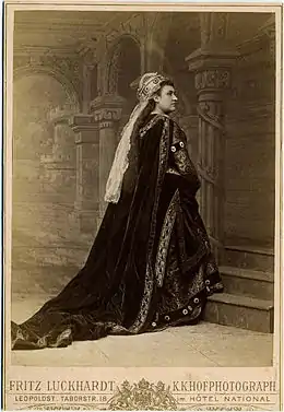 Materna made her professional opera début at the Thalia Theatre in Graz in 1865. She then married Karl Friedrich, an actor, and was engaged with him singing operettas in suburban theatres near Vienna, and at the Carltheater in Vienna. She made her debut at the Vienna State Opera in 1869, singing Selika in L'Africaine. Popularly received, Materna became a regular performer at the Vienna court for the next 25 years. Her notable performances include Amneris in the first Vienna performance of Aida in 1874 and the title role at the première of Goldmark's Die Königin von Saba (10 March 1875).