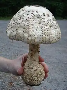 Amanita atkinsoniana, also known as the Atkinson's amanita,[3] is a species of fungus in the family Amanitaceae. The fruit body is white to brownish, with caps up to 12.5 centimetres (5 inches) in diameter, and stems up to 20 cm (7+3⁄4 in) long. The surface of the cap is covered with brownish conical warts.