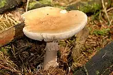 The fungus favours sandy and slightly acidic soils, and is often found in association with Norway Spruce (Picea abies). The mushroom grows either singly, scattered, or in groups in coniferous and mixed forests, especially along paths and roads.[6][23]