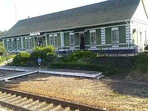 The historic station has survived to this day: the bright green rectangular building is almost completely devoid of decor and more reminiscent of a house, but the presence of rustic makes it brighter and more expressive.