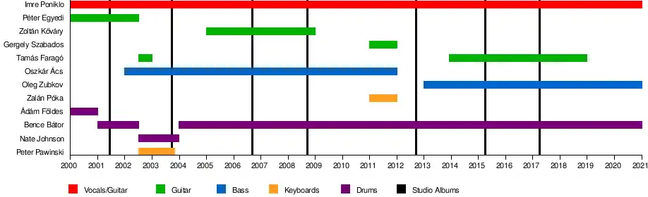 | Past members | Oszkár Ács Péter Egyedi Tamás Faragó Ádám Földes Nathan Johnson Zoltán Kőváry Gergely Szabados Ákos Örményi Pete Pawinski Zalán Póka |
