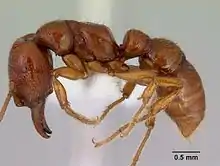 It has been accidentally introduced to New Zealand, where it has become widely established across the North Island. It is the largest ant species established in New Zealand.[2]