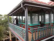 Two ornate palace buildings were built of rosewood in this compound in 1871 on the former site of the Manjakamiadana royal idol residence. The first and larger of the two, Fandriampahalemana,[10] features a room for receiving visitors and a large salon on the ground floor, and the bedrooms of Queen Ranavalona II and her serving lady on the second floor.[14] The original European furnishings have been preserved, and the many gifts given by foreign dignitaries to the queen are on display here.[41] The queen's bedroom is considered a sacred place and many visitors come on pilgrimage to pray to her spirit.[10]