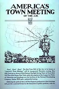 ![]() 1935 promotional brochure for America's Town Meeting of the Air | |