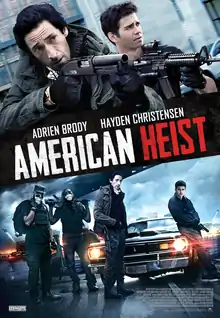 American Heist is a 2014 action drama film directed by Russian director Sarik Andreasyan, based on the 1959 film The Great St. Louis Bank Robbery directed by Charles Guggenheim and John Stix.[2] The film stars Hayden Christensen, Jordana Brewster, Adrien Brody and Akon. It had its world premiere in the Special Presentations section of the 2014 Toronto International Film Festival on September 11, 2014,[3] and was released theatrically in Canada on July 24, 2015, by Mongrel Media.[4]