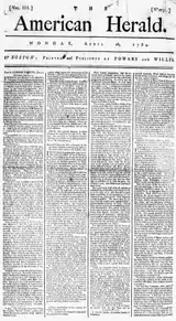 The American Herald (1784-1790) was a newspaper in Boston and Worcester, Massachusetts, published by Edward Eveleth Powars and Nathaniel Willis.[1][2][3][4]