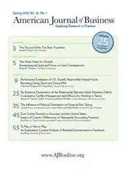 The American Journal of Business is a biannual peer-reviewed academic journal of business studies that is published by Emerald Group Publishing. It covers research in accountancy, finance, information systems, management, marketing, operations management, and strategic management. The journal was established in 1985 as the Mid-American Journal of Business, as the original member universities were in the Mid-American Conference. In 2007, it obtained its current name. It is currently sponsored by 10 universities accredited by the Association to Advance Collegiate Schools of Business, including Ball State University, Bowling Green State University, Central Michigan University, Cleveland State University, Miami University, Northern Illinois University, Ohio University, the University of Toledo, the University of Akron, and Western Michigan University. Each university provides a board member. The editors-in-chief are Richard Reed and Susan F. Storrud-Barnes (Cleveland State University). Occasionally, the journal publishes special issues dedicated to a single topic.