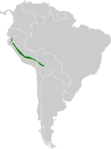 The species inhabits wet and humid montane forest including cloudforest and elfin forest. Though it is found at forest edges and open bushy terrain, it prefers the interior of closed forest. In elevation it mostly ranges between 1,800 and 3,200 m (5,900 and 10,500 ft) but has been often recorded as high as 3,700 m (12,100 ft) in Peru.[7]