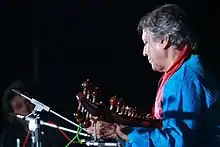 Ustad Amjad Ali Khan (born 9 October 1945) is an Indian classical sarod player, best known for his clear and fast ekhara taans. Khan was born into a classical musical family and has performed internationally since the 1960s. He was awarded India's second highest civilian honor Padma Vibhushan in 2001, India's third highest civilian honor Padma Bhushan in 1991 and Padma Shree in 1975.