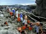 The third factor was the severe weather conditions that hampered efforts to clean up the oil.[5] As a result, clean-up was restricted to manual retrieval of oil using buckets, hand nets, and scoops.