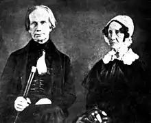Amos Kendall was markedly shy. In part, he had never learned social graces in his family during childhood and adolescence. He did not actively participate in social gatherings until he moved to Groton, Massachusetts, in 1811. There, he fell in love with 16-year-old Eliza, the sister of a prominent Boston family of merchants. She refused his attentions (as she was too young to marry), and Kendall wooed her older sister, Mary. But the loss of his legal apprenticeship and subsequent move to Kentucky in 1813 ended their relationship.[31]