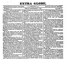 Suffering from extreme poor health,[60] he resigned as Postmaster General effective May 18, 1840.[61] John Quincy Adams, a bitter foe of both Jackson and Van Buren, confided to his diary in December 1840 that he believed both men had been "for twelve years the tool of Amos Kendall, the ruling mind of their dominion."[62] Kendall wrote extensively for the Washington Extra Globe newspaper in the summer and fall of 1840 in an unsuccessful effort to boost Van Buren's chances for re-election.[36]