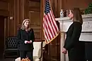 On October 26, the Senate voted to confirm Barrett's nomination to the Supreme Court, with 52 of 53 Republicans voting in favor, while Susan Collins and all 47 Democrats voted against; Barrett took the judicial oath on October 27.[2] Democrats rebuked Republicans and accused them of hypocrisy, stating that they had violated their own interpretation of the Biden rule, which they set in 2016 when they refused to consider then-President Obama's nomination of Merrick Garland more than nine months before the end of his term.[3] The 35 days between the nomination and the 2020 presidential election marked the shortest period of time between a nomination to the Supreme Court and a presidential election in U.S. history.[4][note 1]