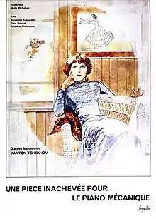 An Unfinished Piece for Mechanical Piano (Russian: Неоконченная пьеса для механического пианино, romanized: Neokonchennaya pyesa dlya mekhanicheskogo pianino) is a 1977 Soviet drama film directed by Nikita Mikhalkov, who also co-stars. It is based on Anton Chekhov's Platonov,[1] as well as several of his other short stories. It was filmed at Pushchino-Na-Oke (Artsebashev Estate), Pushchino, Russia, which was dilapidated in the film and is now abandoned.