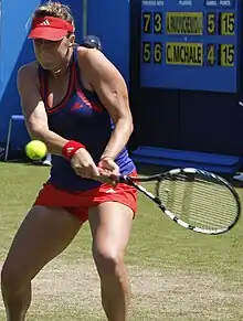 Anastasia Sergeyevna "Nastia" Pavlyuchenkova[3] (Анастаси́я «Настя» Серге́евна Павлюче́нкова; born 3 July 1991) is a Russian professional tennis player. A junior prodigy, Pavlyuchenkova won three Grand Slam titles and became the junior world No. 1, in January 2006, at the age of 14. She continued her success after turning professional, reaching a career-high singles ranking of world No. 11 on 8 November 2021.[4]