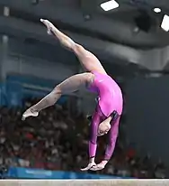 Anastasiia Yuriivna Bachynska (Ukrainian: Анастасія Юріївна Бачинська, born 4 August 2003) is a retired Ukrainian artistic gymnast. She is the 2019 European Games floor exercise champion, the 2021 European balance beam bronze medalist, and the 2018 Youth Olympic all-around and floor exercise bronze medalist. She was also a member of the gold medal-winning team at the 2020 European Championships.[1] Daughter of Yurii Bachynskyi.[2]