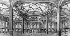 De Baudot's design for the church of Saint-Jean-de-Montmartre, Paris, whose construction started in 1894, was the first to use a reinforced concrete framework enclosed by thin exterior walls.[18] His Théatre de Tulle was built between 1899 and 1902 on the site formerly occupied by a 17th-century Jesuit chapel. It was one of the first to be built of reinforced cement. The facade was polychrome, incorporating sandstone, limestone, ceramics, colored glass and brick.[19]