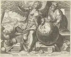 Astrology by the 16th-century Dutch engraver Cornelis Cort has a book labeled "Anaximenes" (bottom left).