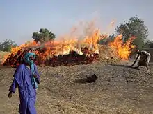 The simplest and earliest firing method is the open fire. The vessel to be fired is covered and filled with flammable material. It is placed on a flat piece of ground, surrounded by a low wall, or put in a pit. During the firing process, the potter has relatively little control. The vessel is in direct contact with the flames and the fuel, which heats quickly and then cools down again quickly.[25][29]