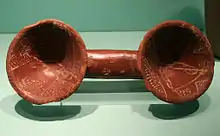 In Egyptology, the term 'pottery' is used to refer to all non-figural objects made from fired clay. The majority of pottery vessels surely served as household wares and were used for the storage, preparation, transport and consumption of food and other raw materials. In addition to this, there were other objects frequently used in the household, like bread moulds, fireboxes, lamps and stands for vessels with round bases. Other types of pottery served ritual purposes. Sometimes water pipes were constructed from amphorae laid back-to-back, but actual ceramic water pipes were only introduced in the Roman period. Musical instruments, like rattles, could also be made from ceramics, in the form of bottles filled with pebbles and then sealed before being fired.[37][38]