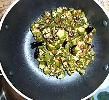 Vegetables are often cooked in a gravy of menthi kura (మెంతి కూర) (fenugreek seed paste), avapettina kura (ఆవపెట్టిన కూర) (mustard seed paste), or nuvvugunda kura (నువ్వుగుండ కూర) (sesame paste). Ullikaram is another popular dish in which vegetables or corn seeds are flavored with shallots or onion paste.
