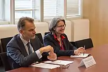 ![]() Haspels (on the left) whilst serving as the Director General for Political Affairs | |