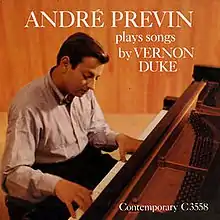 André Previn Plays Songs by Vernon Duke is a piano solo, jazz album by André Previn. It was recorded in August 1958.[1] It was intended as a homage to jazz composer Vernon Duke. It was released in 1958 by Contemporary Records as C 3558. It was Previn's second album dedicated in its entirety to a single composer. After its release, other two tribute albums followed: André Previn Plays Songs by Jerome Kern (1959) and André Previn Plays Songs by Harold Arlen (1960).