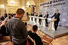 After the final verdict in the war crimes trial against former high-ranking officials of Herzeg-Bosnia, followed by the suicide of Slobodan Praljak, Plenković stated that Praljak's suicide illustrated the "deep moral injustice towards the six Croats from Bosnia and Herzegovina and the Croatian people".[52] The ICTY prosecutors and its president criticized the statements from Croatian officials and called on them to accept the court's findings.[53][54] Plenković later said that his country accepted the verdict and expressed "regrets and condolences very clearly for all the victims of the crimes mentioned in this verdict".[55]