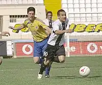 Andrew Cohen battles with Marsaxlokk's defender Brian Said.