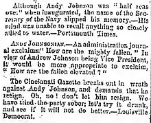 - ↑ "Our New Republican Vice President Requested to Resign". The Cincinnati Enquirer. March 11, 1865. p. 1. Retrieved 2023-12-29.