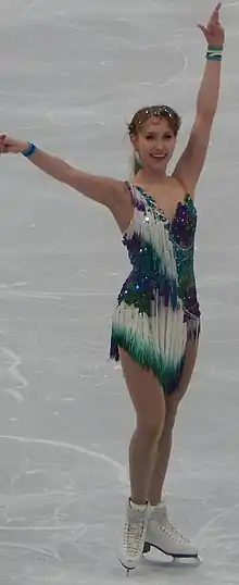 Abachkina began learning to skate in 2006.[3] She teamed up with Louis Thauron in 2012. The duo debuted on the ISU Junior Grand Prix series in 2013, placing eighth in Estonia and tenth in Poland. In 2014, they were named in the French team for the World Junior Championships in Sofia, Bulgaria.[4] Abachkina/Thauron placed 19th in the short dance, 15th in the free dance, and 18th overall.[5] They were coached by Muriel Zazoui, Romain Haguenauer, Olivier Schoenfelder, and Diana Ribas in Lyon, France, during the 2013–14 season.[6]