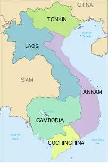 Filippini was civilian Governor of Cochinchina from 19 June 1886 to 22 October 1887.[7] He was sent to replace Charles Thomson, who had been succeeded by Charles Auguste Frédéric Bégin as acting governor.[8] Filippini obtained permission from his superiors to negotiate a settlement with King Norodom of Cambodia in which the French respected the autonomy of the king's administration and cut back the number of French officials in the kingdom. In return, Norodom called for a ceasefire and arranged a general amnesty for the rebels. The main rebel commanders had ceased fighting by the end of the year.[9] Filippini managed to restore some of France's influence in Cambodia.[8]