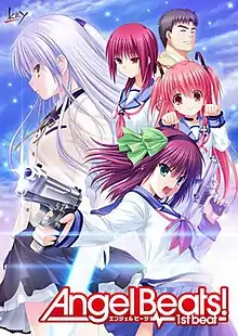 Angel Beats! 1st Beat is a Japanese visual novel developed by Key, a brand of Visual Arts. It was released on June 26, 2015 for Windows and is rated for all ages. The game is based on the 2010 anime television series Angel Beats!, originally conceived by Jun Maeda, and also adapts scenes featured in the anime. The story takes place in the afterlife and focuses on Otonashi, a boy who lost his memories of his life after dying. He is enrolled into the afterlife school and meets a girl named Yuri who invites him to join the Afterlife Battlefront—an organization she leads that fights against God. The Battlefront fight against the student council president Angel, a girl with supernatural powers.