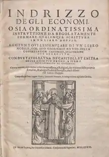 • Indrizzo degli economi. In Mantoua: Francesco Osanna. 1586.
