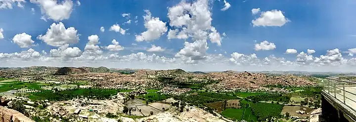 The Anjanadri Hills in lies in Hanumanahalli (which means Hanuman’s village) near to Hampi, Karnataka State, India. It is the birthplace of Hanuman. According to Sanātana Dharma, Hanuman was born to Anjana and thus Hanuman was also called Anjaneya, and his birthplace Anjaneyadri (Anjana's Hill).