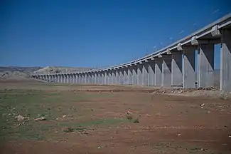 The Ankara–Sivas high-speed railway (Turkish: Ankara–Sivas yüksek hızlı demiryolu), is a 406 km (252 mi) long high-speed railway in Turkey and is the second longest high-speed railway in the country after the Ankara–Istanbul high-speed railway. Travel time between Ankara and Sivas was reduced to 2 hours and 50 minutes,[2] from around 9 hours and 30 minutes with conventional trains.[3][4] The railway will also serve as an extension of the Ankara-Istanbul HSR with a total journey time from Istanbul to Sivas at around 7 hours. The line was opened on April 26, 2023.[5]