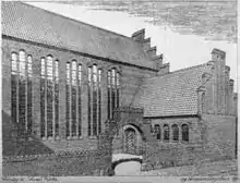 After some years the church had become too small and Jensen-Klint was asked to design an extension. Once again the Anna Committee raised the necessary funds.[1] This extension added a parish hall in a lateral which had a gable toward the street. The last extension was carried out from 1924 to 1928 and added a second lateral wing at the other end of the nave.