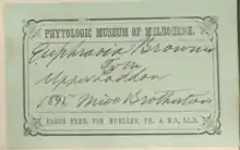 The specimens collected by Miss Brotherton around the Castlemaine district are today held in herbarium collections around the world, distributed by Mueller. This includes the National Herbarium of Victoria, Royal Botanic Gardens Victoria,[17] the Academy of Natural Sciences of Drexel University,[18] the National Museum of Natural History,[19] and the William and Lynda Steere Herbarium.[20]