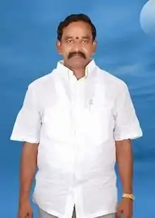 Anna Rambabu is an Indian politician and Member of Legislative Assembly from Giddalur (Assembly Constituency) in the state of Andhra Pradesh.[1] He contested to Andhra Pradesh Legislative Assembly as a YSRCP candidate in the year 2019 and won against TDP candidate Ashok Reddy Muthumula with a majority of 81,035 votes, which is the second highest majority in the state of Andhra Pradesh, only after Y.S.Jagan Mohan Reddy, the Chief Minister of Andhra Pradesh.[2][3]