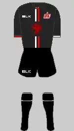 The current kit is manufactured by BLK and displays the logos of all the club's sponsors across the shirt and shorts. Current sponsors are Motis Ireland, Burger King, Rich Sauces, Tayto, Lowe, Johnston Kennedy DFK.