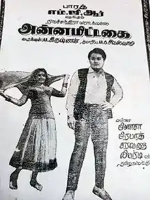 Annamitta Kai (transl.The hand that feeds) is a 1972 Indian Tamil-language film written by G. Subramanium and directed by M. Krishnan Nair, starring M. G. Ramachandran, Jayalalithaa and Bharathi. It was produced by Ramachandra Productions, owned by M. S. Sivaswamy. Annamitta Kai was Ramachandran's last black and white film.[2]