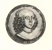 Anne Arundell, Lady Baltimore, (c.1615 / 1616 - 1649), namesake for Anne Arundel County, Maryland, wife of Cecil Calvert, 2nd Baron Baltimore], (1605-1675), Lord Baltimore, Lord Proprietor of Province of Maryland; minted silver medallion, National Gallery of Art, (Washington, D.C.)