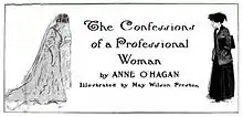 As a journalist, O'Hagan was a regular contributor to Vanity Fair, Harper's, Munsey's, Collier's, and other popular periodicals, often writing on feminist topics.[10][11] For example, an article for Munsey's magazine in 1901 titled "The Athletic Girl," celebrated the entry of women and girls into active recreation, for their long-term health as well as for their release from restrictive clothing and passive pursuits.[12] O'Hagan discusses the differing roles of the spinster and the married woman and how women can choose to be celibate and have mature conversations with single men.[13]