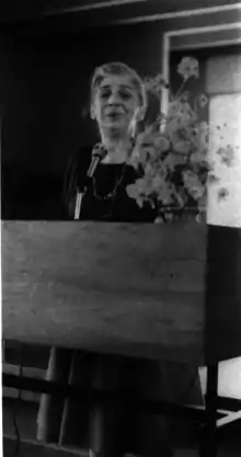 Stein's strategy was "Negotiate, boycott, picket." She claimed that this three-part strategy worked to raise awareness about discriminatory institutions, and apply social pressure to effect policy change.[14] Her work with revolutionary and forward thinking activists Mary Church Terrell and Ella Baker, who further developed her philosophy on social justice.[15] Stein embraced radical politics and communism throughout her political career.[3] In her activism for racial and gender equality, she believed that "If fighting for lower tuition fees, for the rights of the Negro, for higher wages for student workers, for lower prices for the lunch room --- if that be a Red then let's be Reds". Her communist politics haunted her for the rest of her career especially during the Cold War under McCarthyism.[6] Stein's husband Arthur Stein was also an active member of the communist party and refused to collaborate with the House Un-American Activities Committee.[16] Stein's daughter Eleanor upheld her mother's tradition of resistance in the 1960s leading the Weather Underground, a radical Anti-Vietnam War movement.[15]