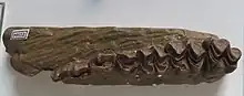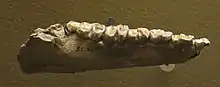 In 1922, Wilhelm Otto Dietrich erected the fourth species A. pompeckji from the locality of Mähringen in Germany, named in honor of German palaeontologist Josef Felix Pompeckj. The species was described as a medium-sized tridactyl species with 4-fingered front limbs and 3-toed hind limbs with slimmer hand bone proportions and a smaller astragalus.[43] A. pompeckji is the least characterized species and has similar dentition to A. laurillardi, making its status less certain compared to the three other species.[23][44]