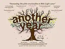 Wendy Ide of The Times described the film as "Leigh at his confident best" and "a disarmingly humane work", writing, "Mike Leigh shows admirable restraint: there are no manufactured crescendos, just a melancholy refrain that builds to its raw realisation in an achingly sad final shot."[16] Xan Brooks of The Guardian described Another Year as "a rare treat",[17] and Geoffrey Macnab of The Independent described the film as "an acutely well-observed study of needy and unhappy people desperately trying to make sense of their lives."[18]